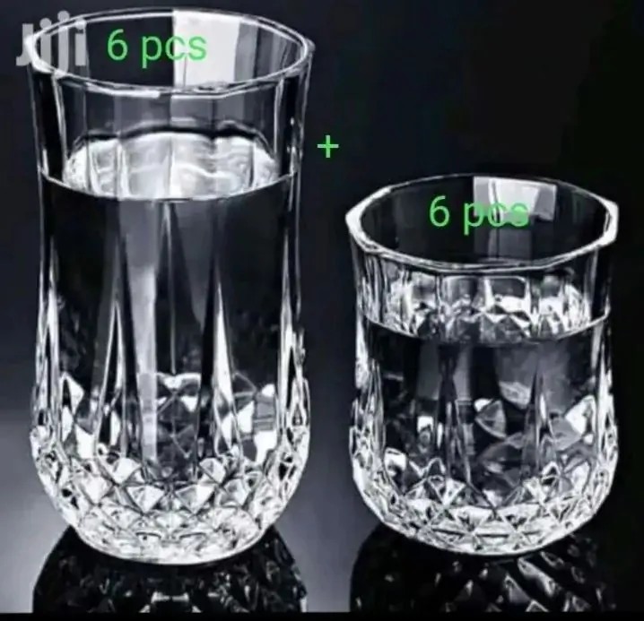 Transparent Diamond Design Water and Coke or Sorbot Glass/ Glass Set (6 pcs+ 6 pcs)